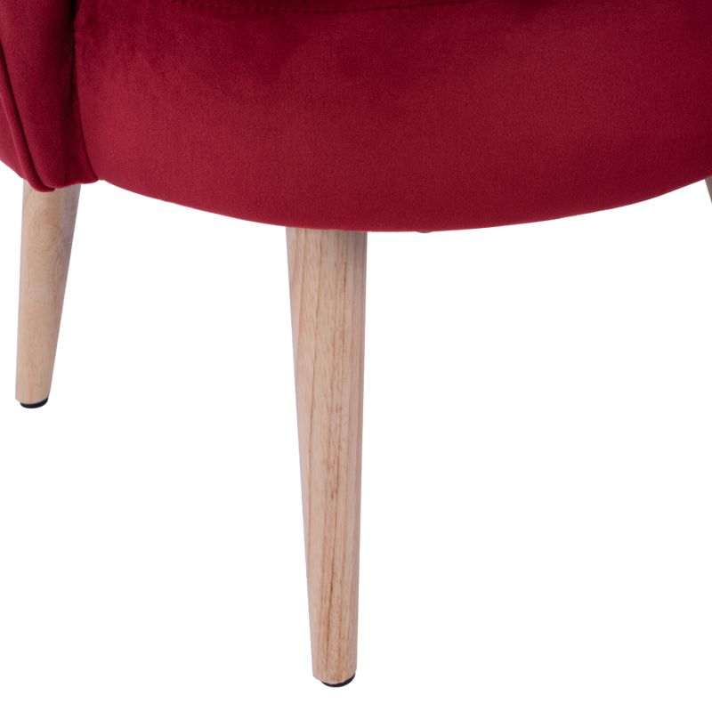 ELISE Табуретка с кадифена облегалка в Червен цвят с дървени крака в естествен цвят.