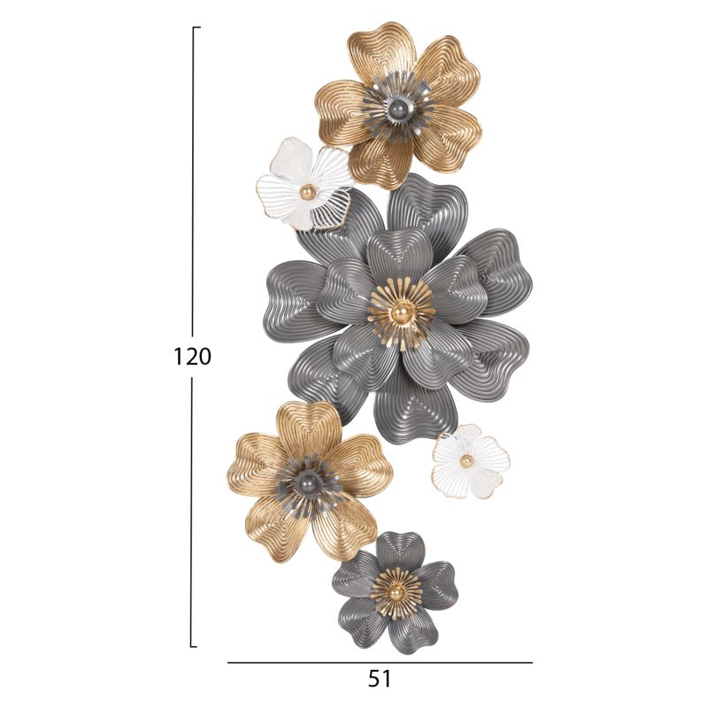 ДЕКОР ЗА СТЕНА HM4214 МЕТАЛ В БЯЛО-СИВО-ЗЛАТНО 51x7,5x120см.