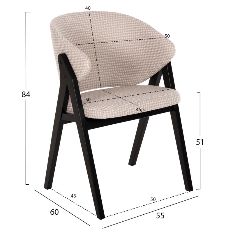 ТРАПЕЗЕН СТОЛ HANA HM9746.01 КАУЧУКОВО ДЪРВО В ЧЕРНО-МАТЕРИЯ В БЕЖОВО 55x60x84Hcm.