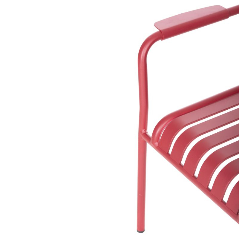 Кресло RACHEL е изработено изцяло от алуминий в ЧЕРВЕН цвят. По отношение на дизайна, той е семпъл с красиви извивки и специално разширени рамена за по-голям комфорт, а фактът, че може да се подрежда, го прави особено практичен, тъй като можете да го съхранявате на възможно най-малко място.