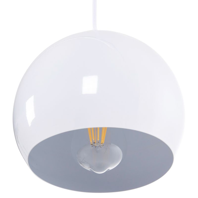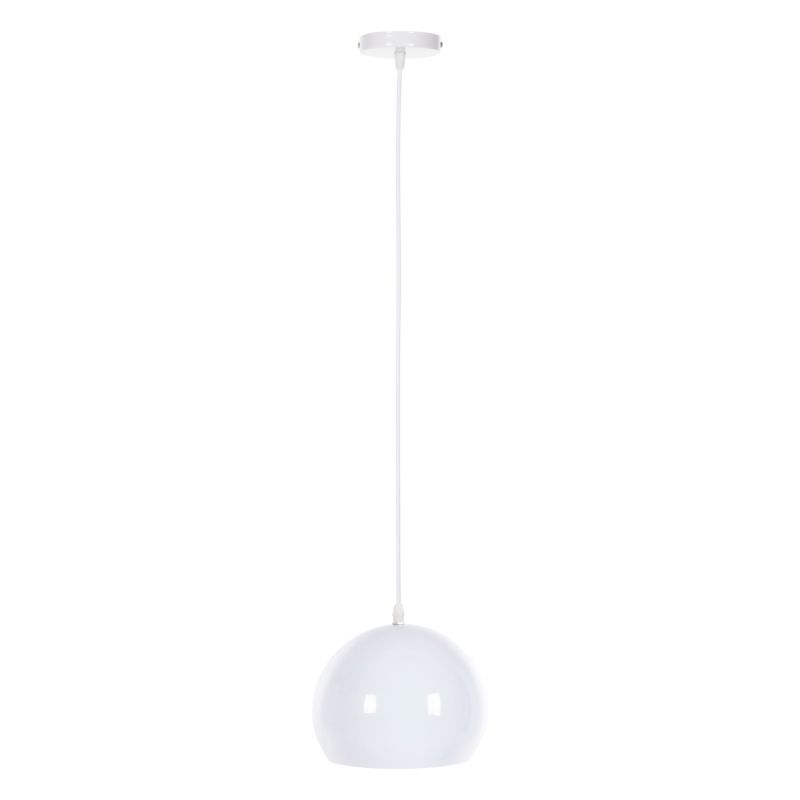 HΜ4108--- Запознайте се с новата, оригинална и елегантна висяща лампа за таван в нашата гама и завършете своята декорация. БЯЛАТА метална камбана, съчетана с бял висящ кабел, е олицетворение на модерния дизайн при плафониери.