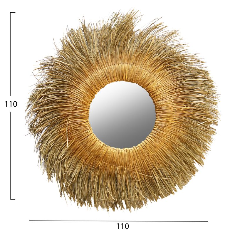 СТЕННО ОГЛЕДАЛО КРЪГЛА РАМКА ОТ ТРЕВА ПАНДАН В НАТУРАЛНО-ЗЛАТЕН ЦВЯТ 110x5x110Hcm.HM7743