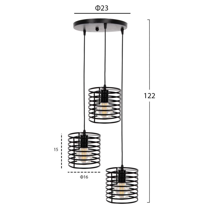 Открийте нашата нова висяща лампа за таван, която допълва вашата декорация. 3-те ЧЕРНИ метални цилиндъра на 3 различни височини са олицетворение на модерния дизайн.