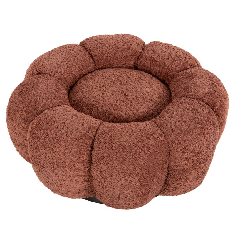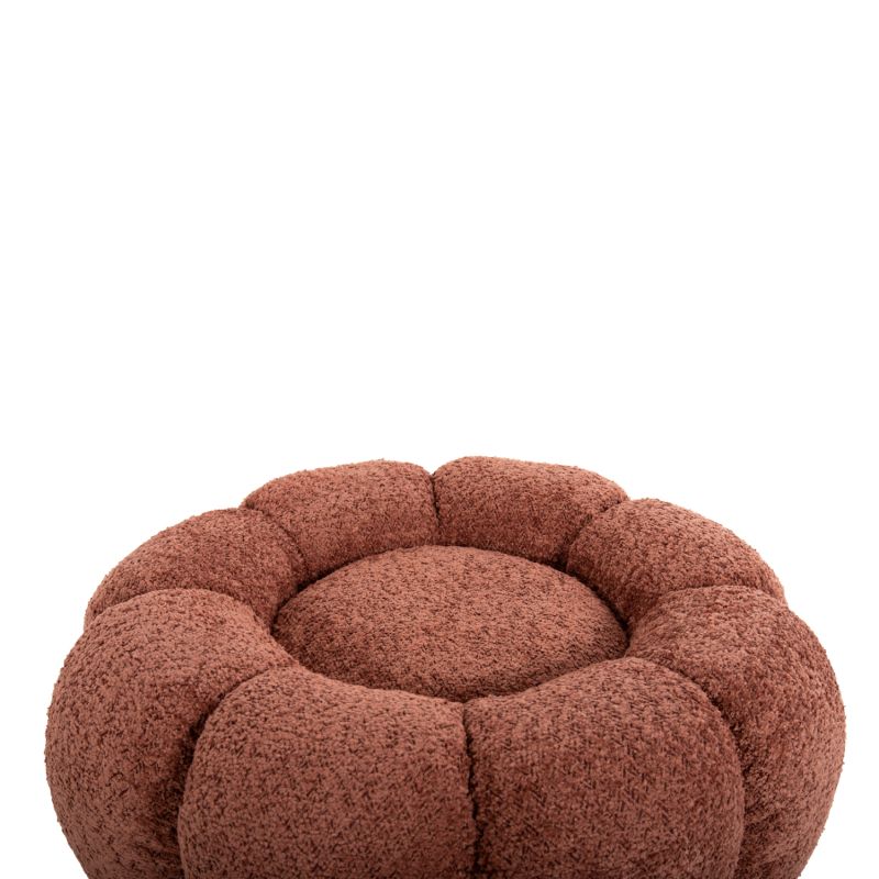 Табуретката KRIPP е модерно и стилно предложение, което ще остави отпечатък във всеки хол. Кръглата му форма, съчетана с топъл плат букле в РОЗОВ цвят и ниска и черна метална кръгла основа, съставляват красива и практична мебел, която може да се съчетае с много други цветове в декорацията на хола.
