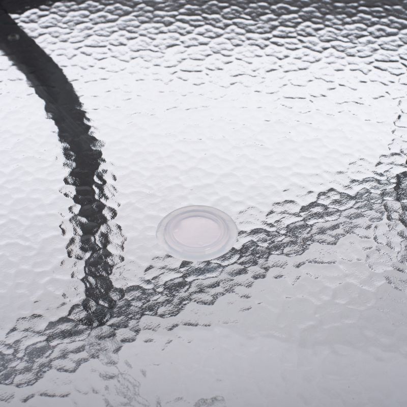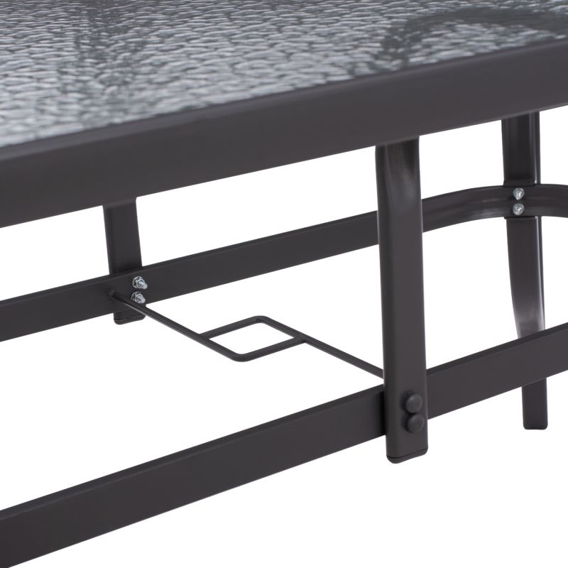 Външна метална маса в сиво с вградено безопасно стъкло (сигурна).