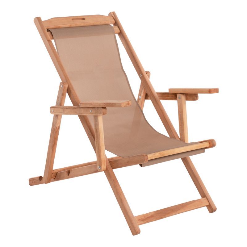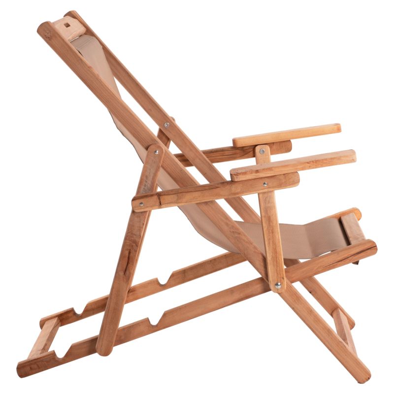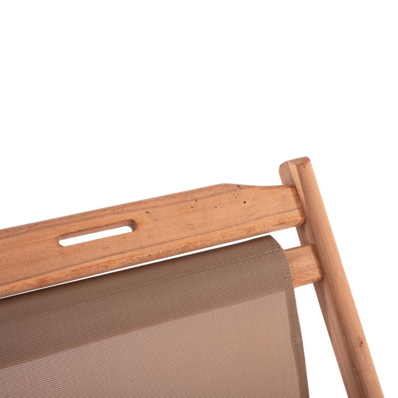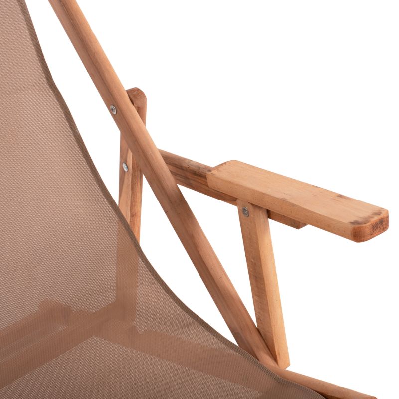Дървеният плажен стол LIMNOS с подлакътници в импрегниран цвят NATURAL е модерно и луксозно предложение за плажа. Дървената му конструкция го прави невероятно издръжлив и здрав, а текстилният плат в цвят MOCHA пасва прекрасно на рамката в ЕСТЕСТВЕН цвят. Стълбата има 3 позиции на накланяне, като по този начин предлага така желания комфорт, който търсите на плажа.