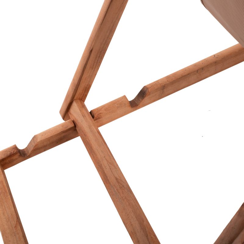 Плажният стол е изработен от букова дървесина. Букът е твърдо, здраво, еластично и тежко дърво с малки пори. Това дърво е елегантно и има червеникаво-кафяв цвят. Използва се предимно за производство на мебели.