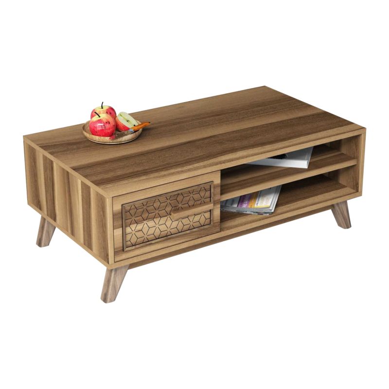 ΗΜ9497.01 холна маса----- Тази холна маса е красива мебел в цвят ОРЕХ. Неговият практичен дизайн ще промени образа на вашия хол или всекидневна към по-добро. Това е конструкция с горна повърхност с добър размер. Отдолу има два рафта и още едно място за съхранение с врата. Елегантност, качество и практичен минимален дизайн са някои от характеристиките на холната маса, която е направена за вас.