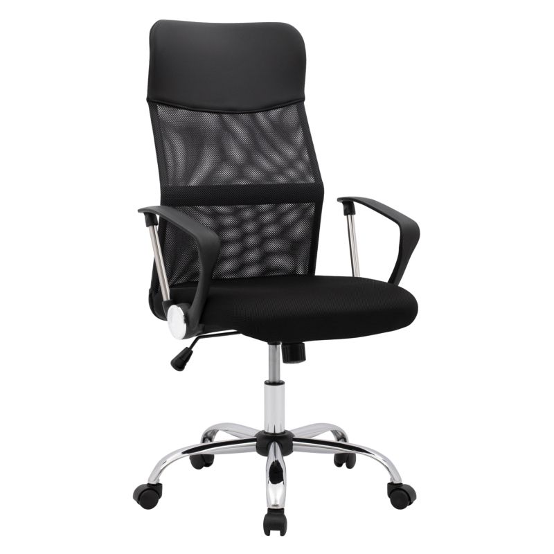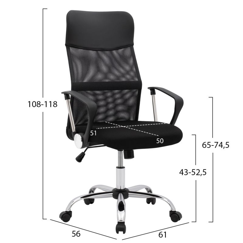 Офис стол HM1000.01 Черен С Мрежа и хромирана основа 61x56x118 см