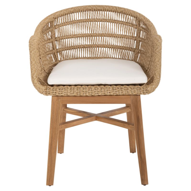 КРЕСЛО LAMORA HM9826 ТИКОВО ДЪРВО-СИНТЕТИЧНО ВЪЖЕ-ВЪЗГЛАВНИЦА 60x61x78Hcm.