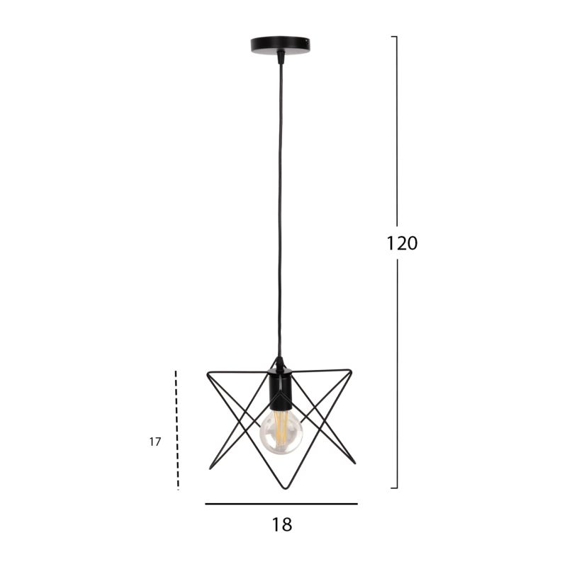 HΜ4075--- Запознайте се с новата, оригинална и елегантна висяща лампа за таван в нашата гама и завършете своята декорация. ЧЕРНАТА многоъгълна структура, подобна на клетка около лампата, която съставлява "шапката" на лампата, не пречи на светлината да достигне до всеки ъгъл, като по този начин прави тази висулка олицетворение на модерния дизайн в таванните лампи.