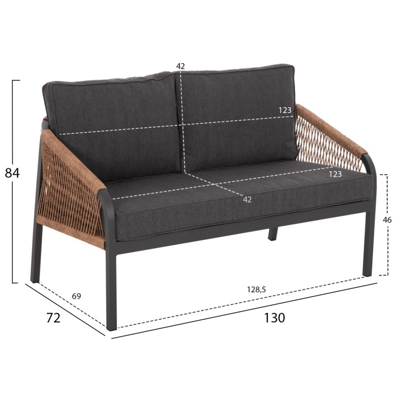 ВЪНШЕН ДИВАН 2-МЕСТЕН MAERLY HM6116.03 АЛУМИНИЙ В АНТРАЦИТ-ТЪМНО БЕЖОВО СИНТЕТИЧНО ВЪЖЕ-АНТРАЦИТ ВЪЗГЛАВНИЦИ