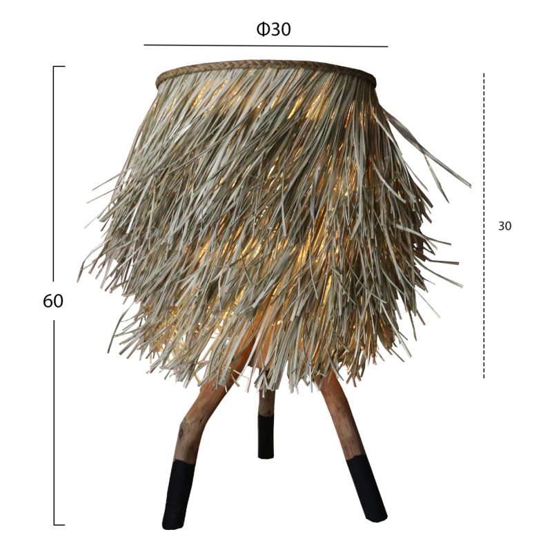 НАСТОЛНА ЛАМПА С КРАКА ОТ ТИКОВО ЛИЦЕ И КАПКА ОТ МОРСКА ТРЕВА В ЕСТЕСТВЕН И ЧЕРЕН ЦВЯТ Φ30x30-60Hcm.HM7771