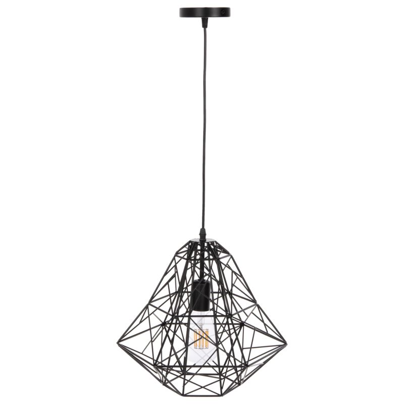Открийте нашата нова висяща таванна лампа и завършете декорацията си. Това е лампа с ЧЕРНА метална капачка във формата на клетка и представлява най-новата тенденция при плафониери.