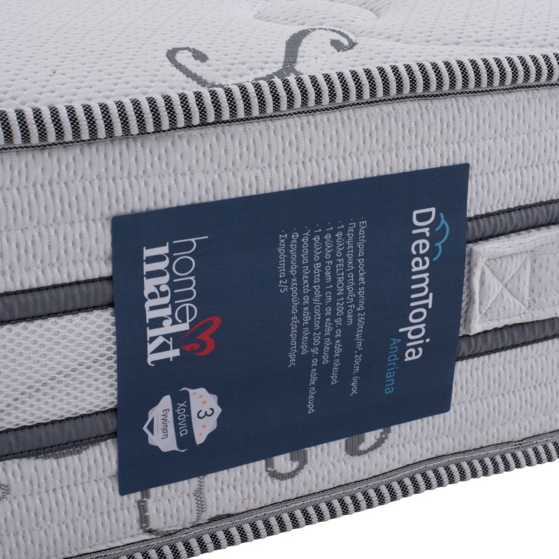 Покет матраците са АНАТОМИЧНИ и се регулират според формата на тялото. Те са особено ефективни, когато матракът се използва от 2 души и движението на единия човек не засяга другия. Те са предназначени и за по-тежки хора. В допълнение, серията “ANDRIANA” има цип, за да можете да виждате вътрешността на матрака, както и дръжки за лесно транспортиране. И накрая, има 2 вентилационни отвора, така че можете да сте сигурни, че матракът никога няма да има проблем с влагата. И всичко това е осигурено с 3 ГОДИНИ ГАРАНЦИЯ! Гамата DREAMTOPIA очарова!