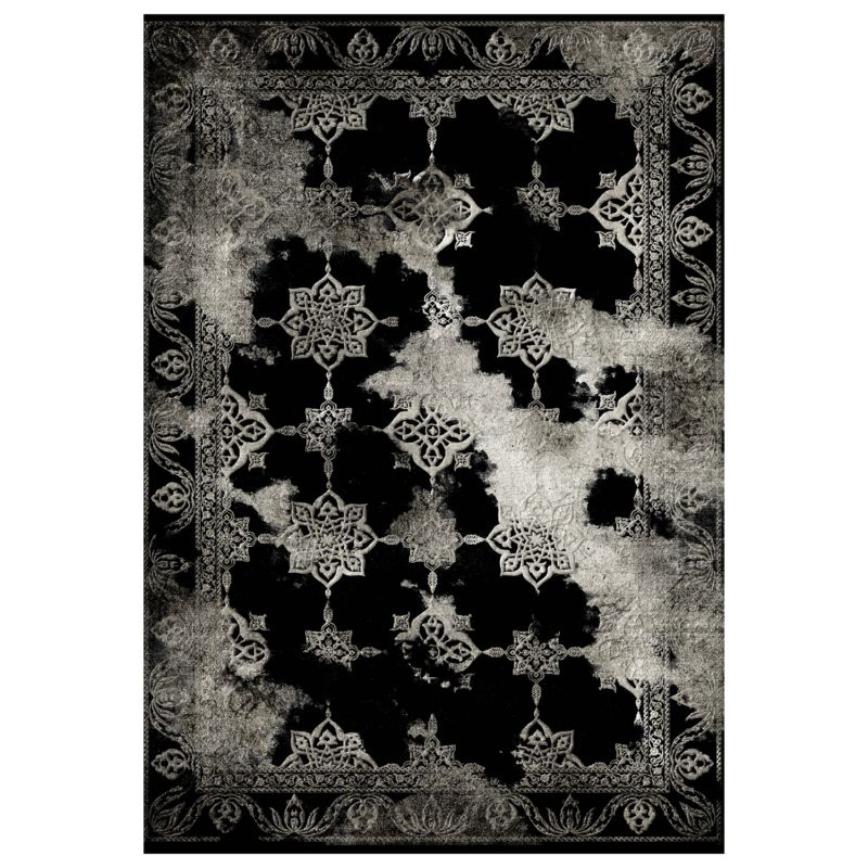 Този килим има доминиращ фонов цвят ЧЕРЕН, с отчетлива флорална граница, но също така и различни дизайни в центъра, въпреки факта, че цялостният стил на килима напомня на ретро измит стенопис и със сигурност ще бъде тема за разговор в вашата всекидневна. В края на краищата, чарът, упражняван от килима, е толкова силен, че не оставя никого безразличен. Придава модерна визия без преувеличения, „съчетавайки“ класически дизайн с „измития“ стил.