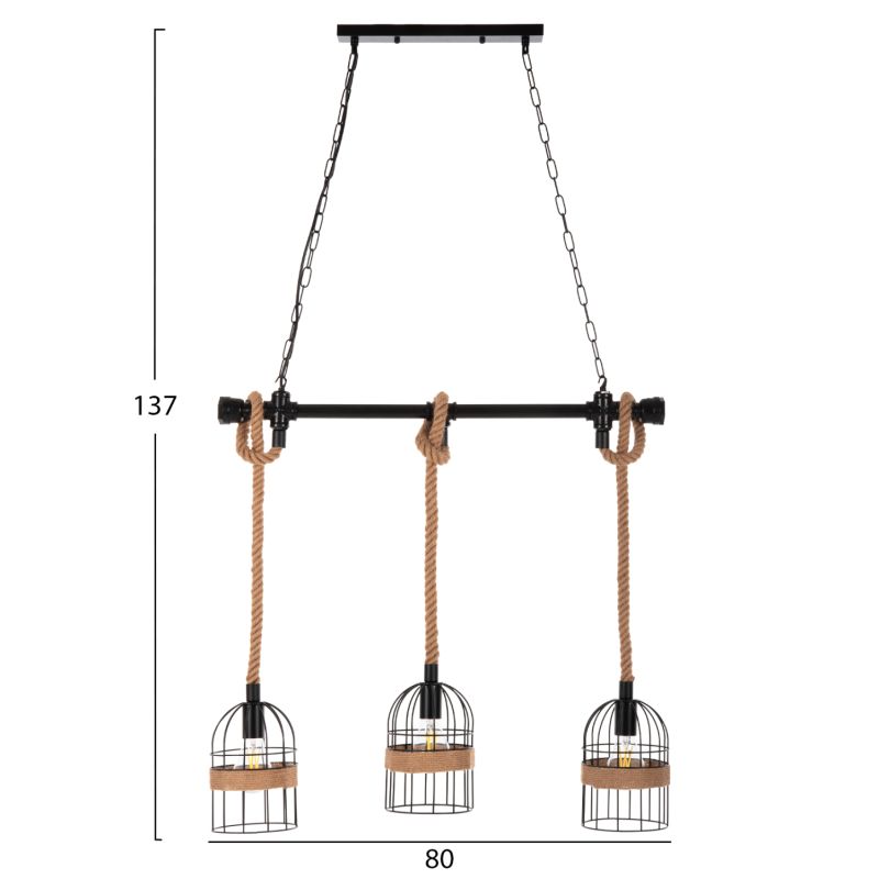 Осветително тяло за таван с 3 светлини HM4180 ЧЕРЕН МЕТАЛ-ЕСТЕСТВЕНО КОНОПЕНО ВЪЖЕ 80x14,5x137Hcm.