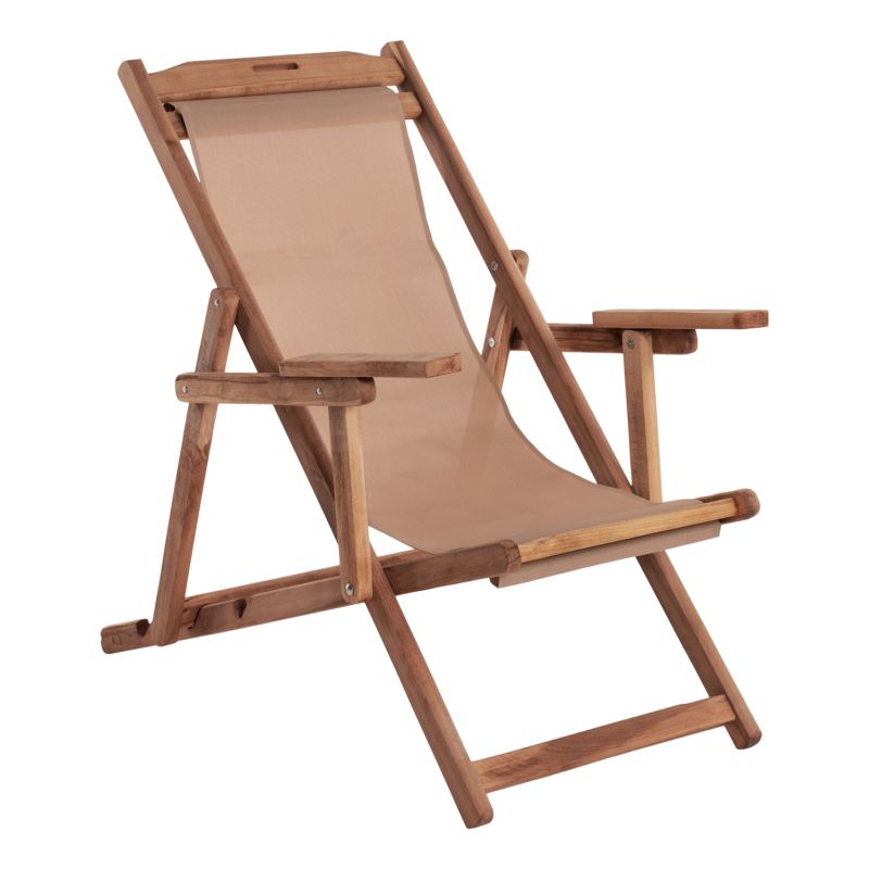Дървеният плажен стол LIMNOS с подлакътници в импрегниран цвят ОРЕХ е модерно и луксозно предложение за плажа. Дървената му конструкция го прави невероятно издръжлив и здрав, а текстилният плат в цвят MOCHA пасва прекрасно на рамката в цвят ОРЕХ. Стълбата има 3 позиции на накланяне, като по този начин предлага така желания комфорт, който търсите на плажа.