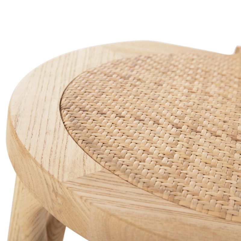 Седалката му е изработена от естествена рогозка (слама) с ръчно изработена плетка, която лежи върху дървена дъска.
