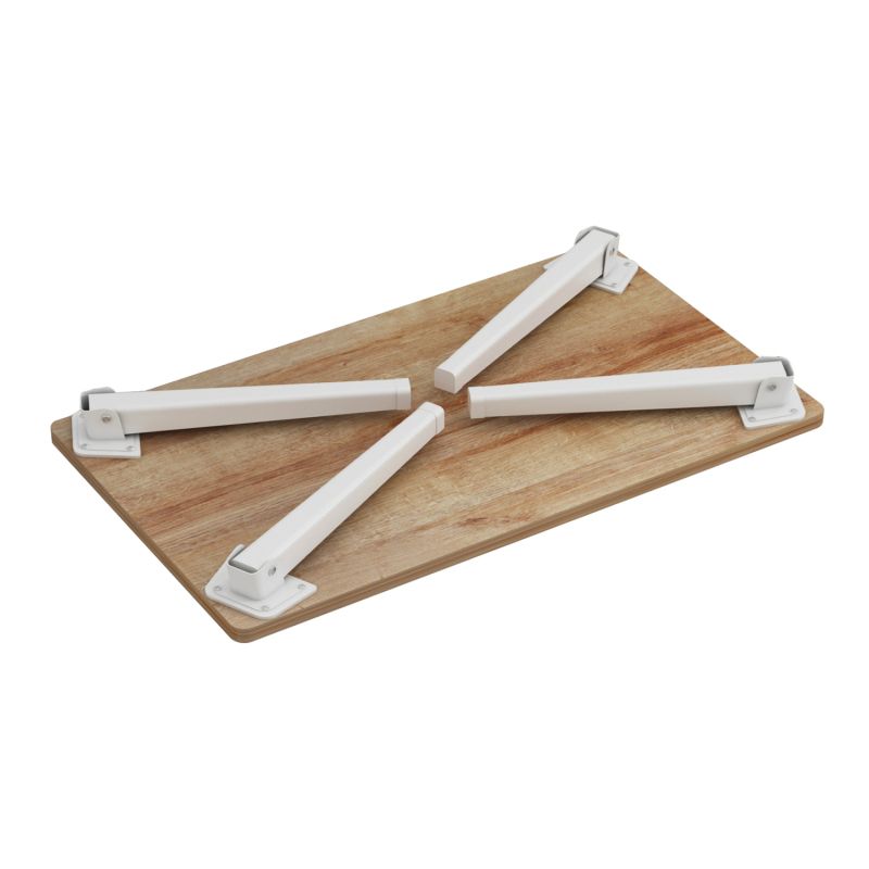 ΗΜ8965.12 Помощна маса-тава за легло----- Помощната маса BRITTA е с меламинова повърхност в цвят НАТУРАЛНО ДЪРВО и 4 къси метални крака в цвят БЯЛО. Особеността е, че краката са сгъваеми и може да се използва както като обикновена масичка на много места, така и като масичка тип "тава" към леглото, ако искате да закусите или друго. И разбира се, може да се сгъне и съхранява на възможно най-малко място. Много практична мебел, която не бива да липсва в нито един дом.