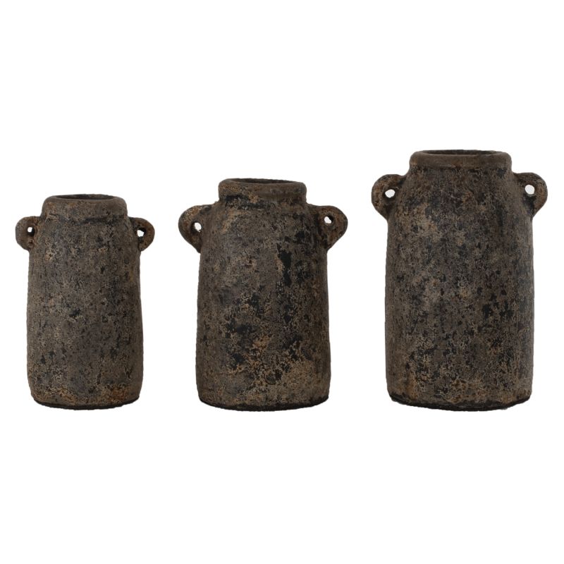 Декоративните вази ΗΜ7710 ще придадат още един "облик" на вашето пространство. Това са 3 вази с "уши" в различни размери, изработени от теракот и цветът им е антично СИВО.