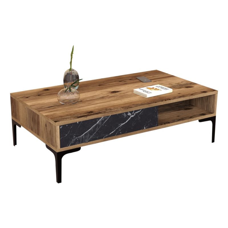 ΗΜ9503.04 Холна маса----- Тази холна маса е красива мебел в цвят ОРЕХ със страничен панел във ВИЗИЯ НА ЧЕРЕН МРАМОР. Неговият практичен дизайн ще промени образа на вашия хол или всекидневна към по-добро. Това е конструкция с горна повърхност с добър размер. Отдолу има отворено пространство за поставяне на предмети. Елегантност, качество и практичен минимален дизайн са някои от характеристиките на холната маса, която е направена за вас.