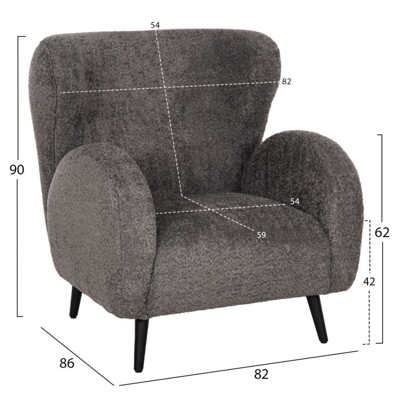КРЕСЛО KRYLY HM9593.01 СИВ ПЛАТ ОТ БУКЛЕ-ЧЕРНИ ДЪРВЕНИ КРАКА 83x87x89Hcm.
