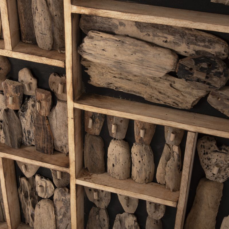 Тази декорация за стена е изработена от дървесина. Това са парчета дърво, изхвърлени на брега или плажа на море, езеро или река от действието на ветрове, приливи или вълни. Тези части се събират и обработват, за да се използват за различни цели.