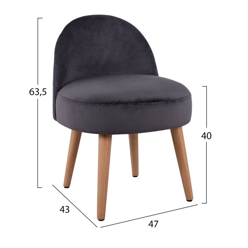 Кадифена табуретка с облегалка Yasmine Grey HM8395.01 47x43x63,5cm