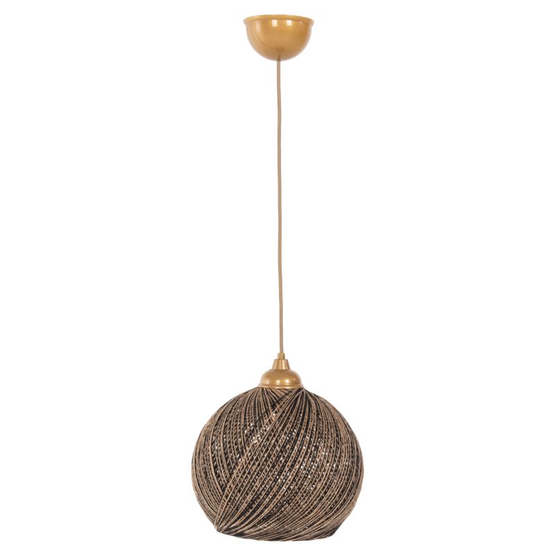 FB97645.01- Висулка за таван----Ако искате да украсите вашето пространство с лампа в бохо стил, това е правилният избор. Представлява едносветово осветително тяло във формата на сфера и е обшито с тънко плетено естествено памучно въже, с високо качество и издръжливост, в ЗЛАТЕН и ЧЕРЕН нюанс. Височината на осветителното тяло се регулира в зависимост от монтажа, така че да можете да го конфигурирате на височината, която ви удовлетворява.
