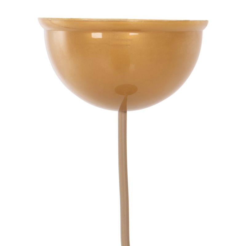 Естетическото превъзходство на това осветително тяло ще го направи да се откроява във вашето пространство. Неговата регулируема височина може да предложи различни нива на яркост и визуално удоволствие. Освен за различни стаи във вашия дом, тя е подходяща и за бизнес помещения като ресторанти, кафенета, хотели и др. Златният цвят на сферата грабва окото и може моментално да промени настроението ви. Светлината се разпространява удивително във вашето пространство през тъканта на сферата и създава незабележима шарка на тъканта по стените. В същото време може да се комбинира с много други материали и дизайни, за да подчертае напълно естетическите достойнства на лампата, тъй като въжето е идеално за композиране на елегантни жилищни пространства, с безкрайни комбинации с необичайни щрихи.