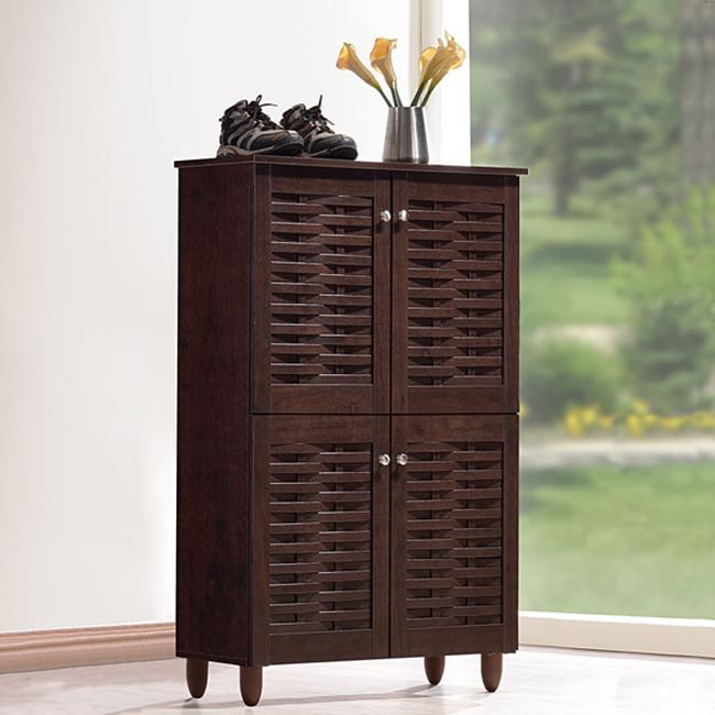 Шкаф за обувки от висококачествен меламин в цвят венге с 4 врати.