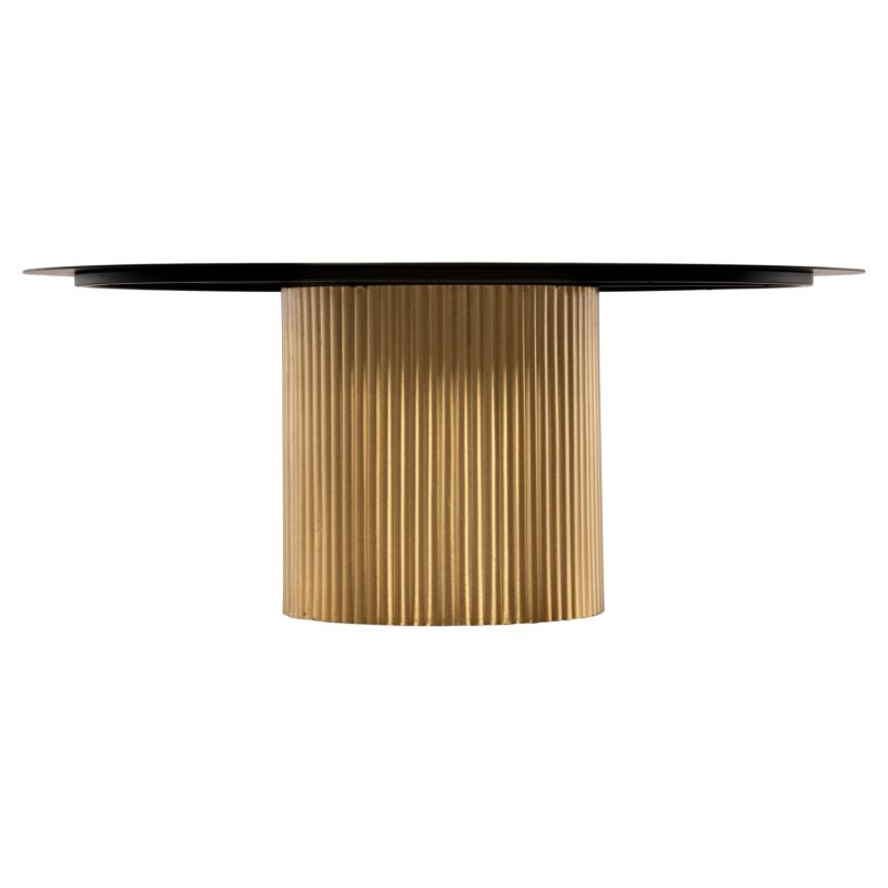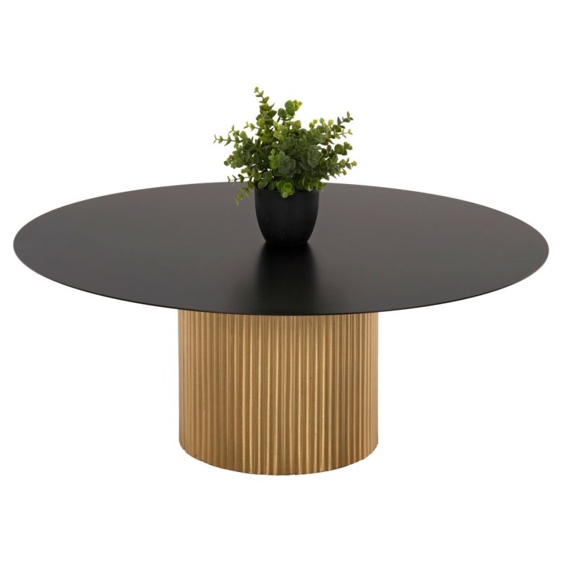 Красивата холна маса CLAD е едно от новите попълнения в нашата гама. Това е много специална кръгла маса с цилиндрична метална и плисирана основа в цвят GOLD. Повърхността също е метална в ЧЕРЕН цвят. Комбинацията е наистина нещо уникално и впечатляващо. Идеален както за дома, така и за бизнес помещения.