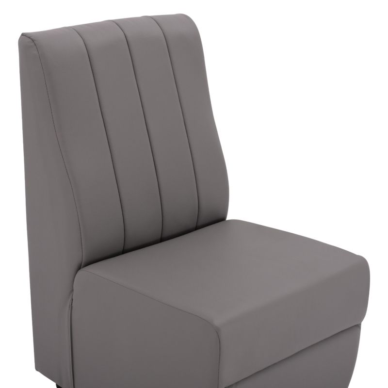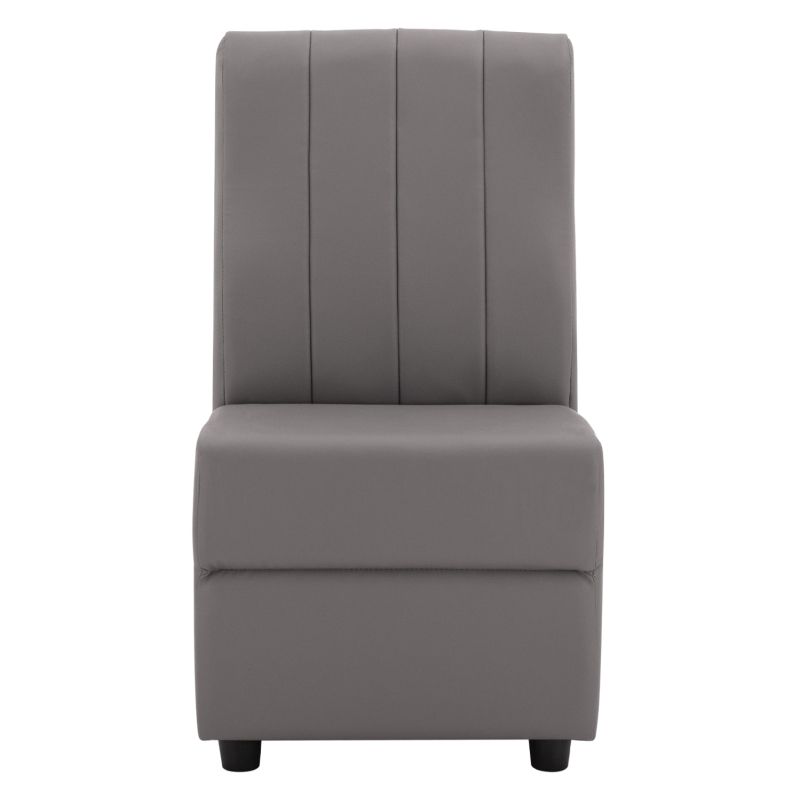Кресло HM3162.10 е модерно кресло в СВЕТЛО СИВ цвят с изключително семпъл дизайн. Състои се от висока облегалка с вертикални шевове и седалка, която прилича повече на богата табуретка. Неговата особеност е, че няма подлакътници, а краката на фотьойла са ниски и здрави, което подчертава специалния му характер.