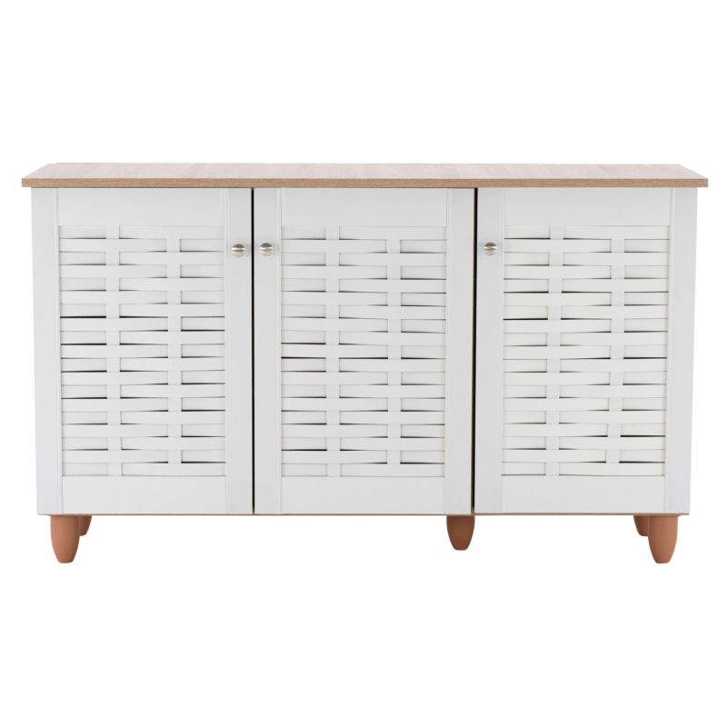 Шкаф за обувки от меламин с отлично качество в цвят сонама и бяло с 3 врати.
