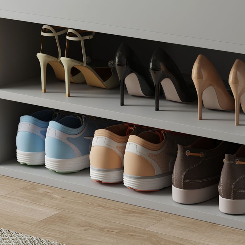 Обичате ли да сте спретнати и чисти? Представяме ви меламинова поставка за обувки ROMIR в СИВ цвят с много ниски метални крака. Мебел, която освен място за съхранение на обувки има и седалка, покрита с PU кожа в цвят АНТРАЦИТ, за да можете да носите обувките си седнали. Мястото за съхранение е отворено на 2 нива, а под повдигащата се седалка има друга, по-плитка зона за съхранение на вещи. Нашата цел е да ви помогнем да организирате и подобрите функционалността на вашия дом по възможно най-добрия начин.