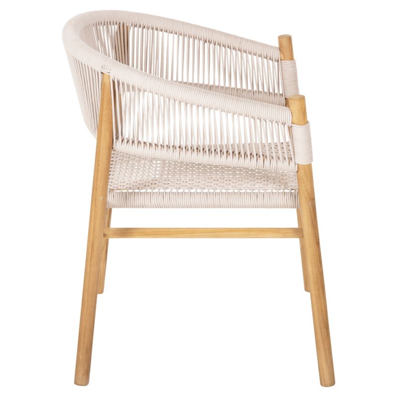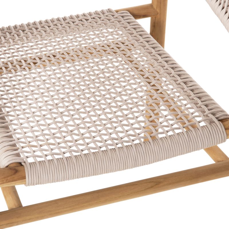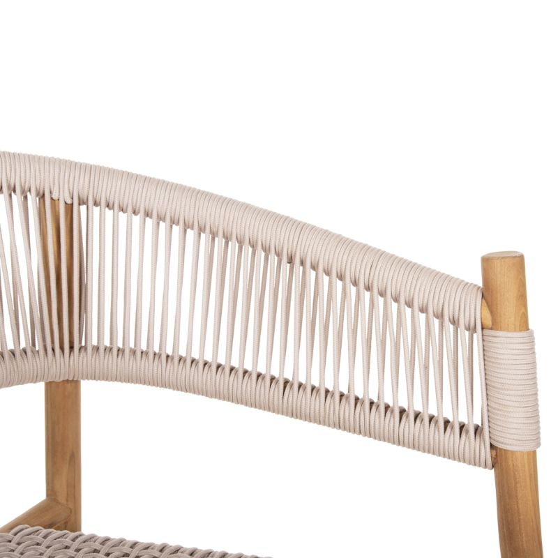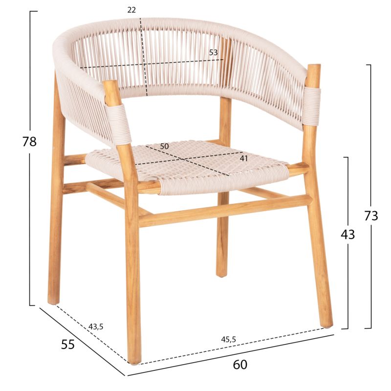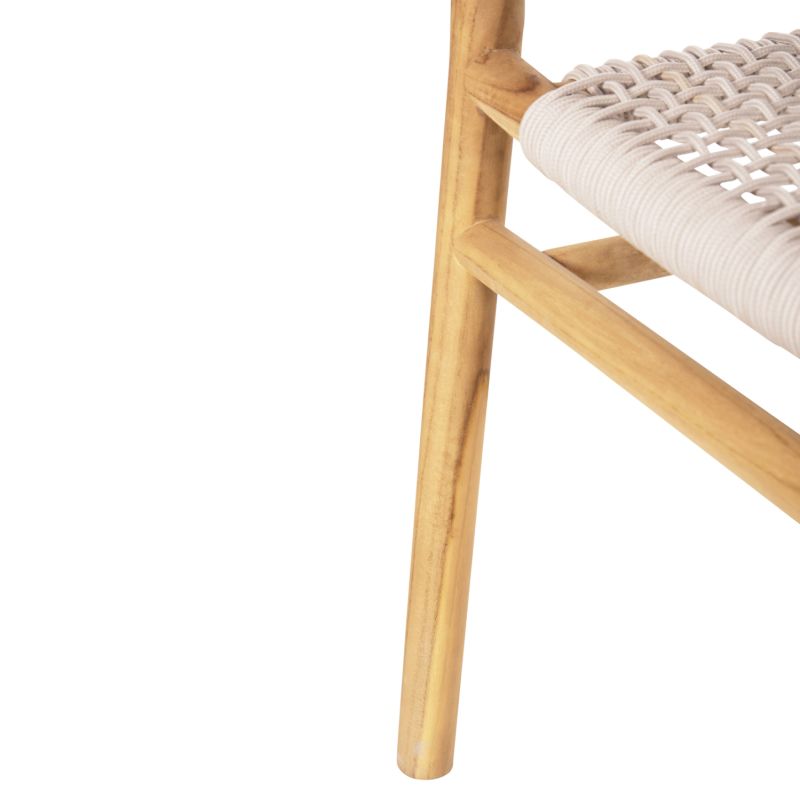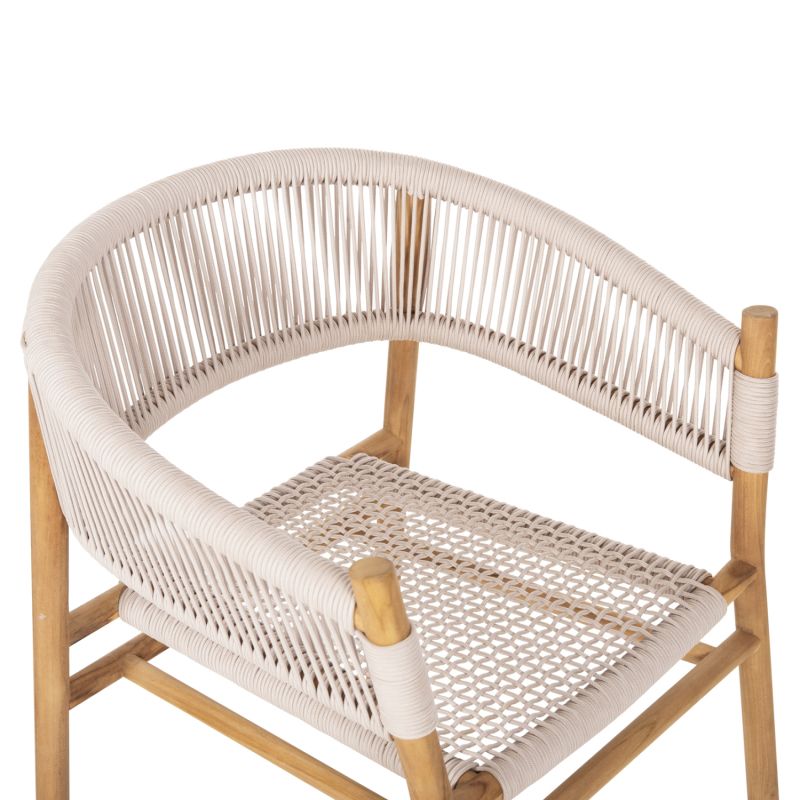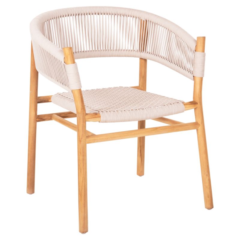 “IRVING” е кресло с несравнима красота. Красивата му рамка е изработена от висококачествена дървесина, а полукръглата облегалка със средна височина и широката седалка са изработени от майсторски плетено въже от най-високо качество в БЕЖОВ цвят. Дизайнерските линии на фотьойла са елегантни и фокусирани върху комфорта на потребителя, а дървото е в НАТУРАЛЕН цвят, който лесно може да се комбинира с различни декоративни шарки. Фотьойлът ще бъде център на интерес, където и да бъде поставен, особено ако е съчетан с подходяща маса за хранене.