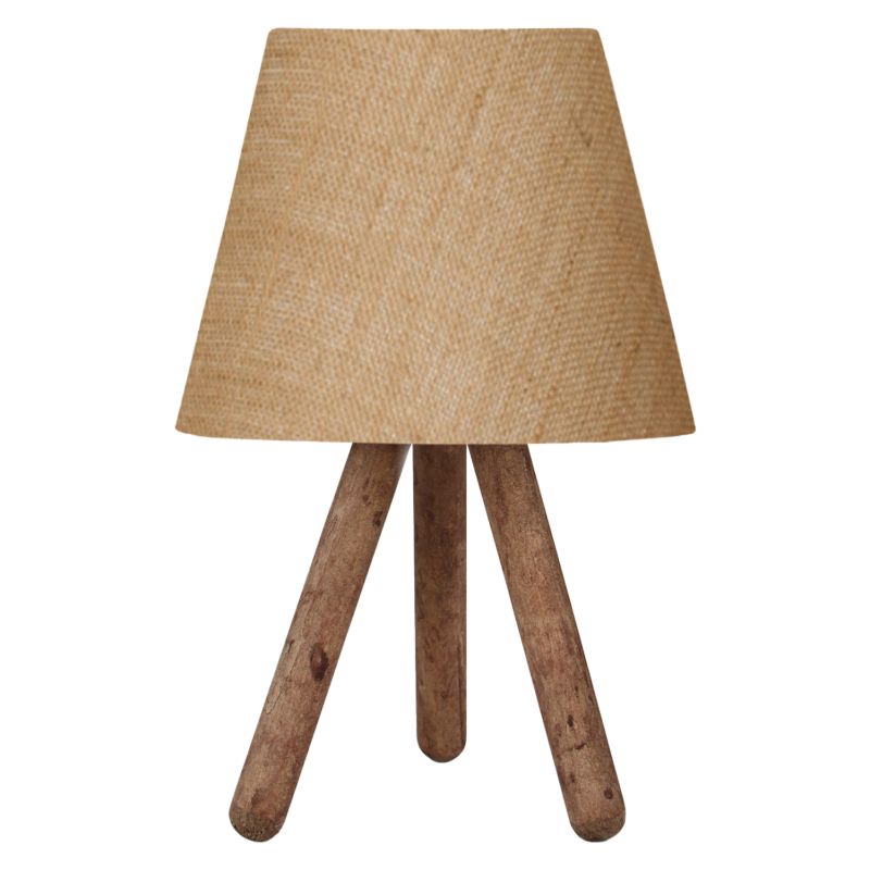 Много специална и модерна настолна лампа. Тя няма класическата основа на настолна лампа, но стои върху дървен триножник с капачка, опряна върху горната част на статива. Дизайнът се отнася повече за подова лампа, отколкото за настолна лампа. Краката са с размер и форма на палка в кафяв цвят, а капачката е в пясъчно-бежово, с кръгла и трапецовидна форма. Този тип осветителни тела не са предназначени за четене и това винаги трябва да се има предвид при избора им. Те са чисто декоративни и съчетаването им с околната среда трябва да е хармонично. Тази лампа е модерна, елегантна и удобна като размери, предоставяща безброй възможности за "завързване" с останалата част от вашата декорация. Това е едно малко произведение на изкуството.