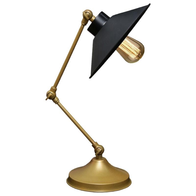 Това вечно предложение в офис осветлението стилистично никога няма да остарее. Това е модулно осветително тяло с регулируема посока на рамената. Основата и рамената му са метални в цвета на стареещо злато, докато има широка и плитка "шапка" в черно. Крайният резултат, макар и класически, ви оставя с модерно усещане.
