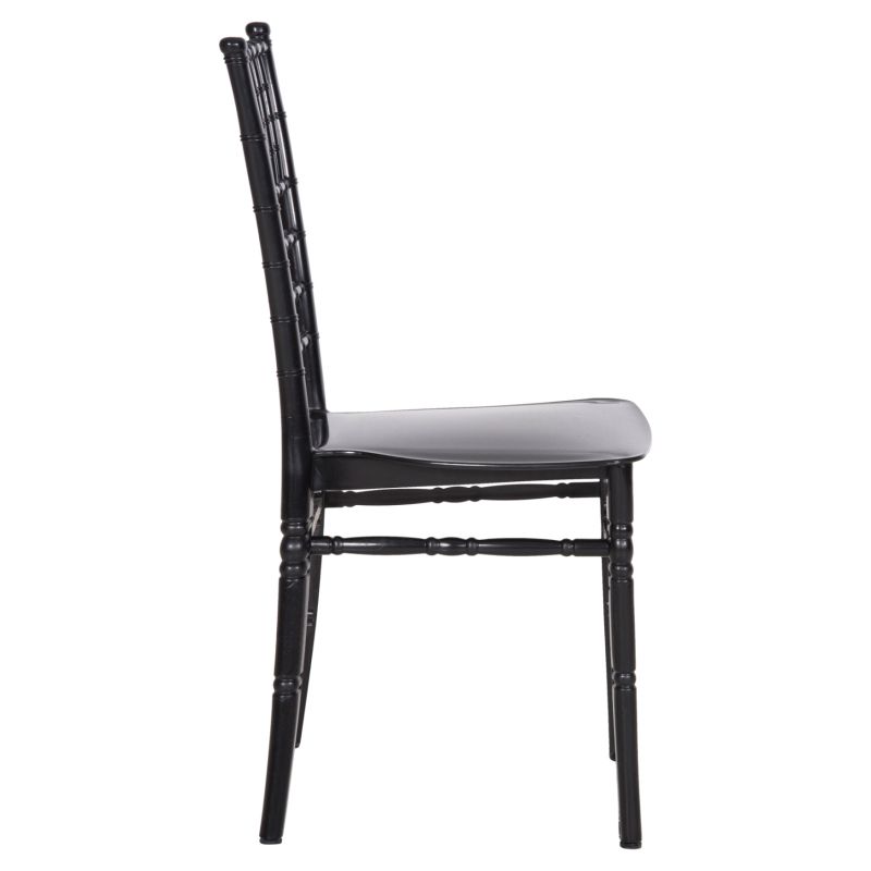 Стол TIFFANY в цвят ЧЕРЕН. Идеално предложение за използване в бизнес помещения (банкетни зали, фирми, кетъринг и др.). Столът има детайли по гредите на облегалката, а също и по краката. Разбира се, такъв стол може да се подрежда, което го прави особено практичен.