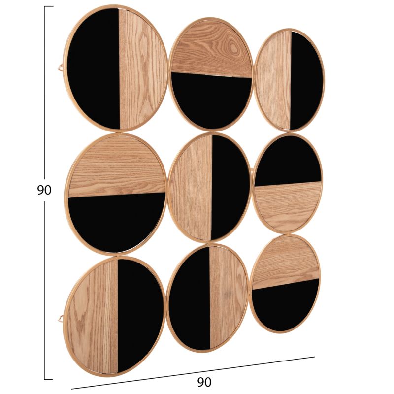 ДЕКОРАЦИЯ ЗА СТЕНА HM4197 МЕТАЛ В ЗЛАТИСТ-МДФ В ЕСТЕСТВЕНО И ГЛАНСОВАНО ЧЕРНО 90x90см.