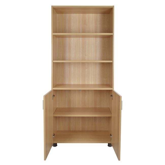 Професионална библиотека, изработена от висок клас меламин в цвят дъб.