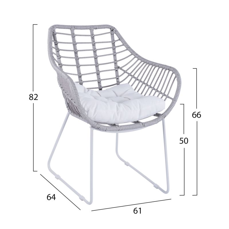Модерно кресло за външни пространства, изработено от метална конструкция в бял матов цвят