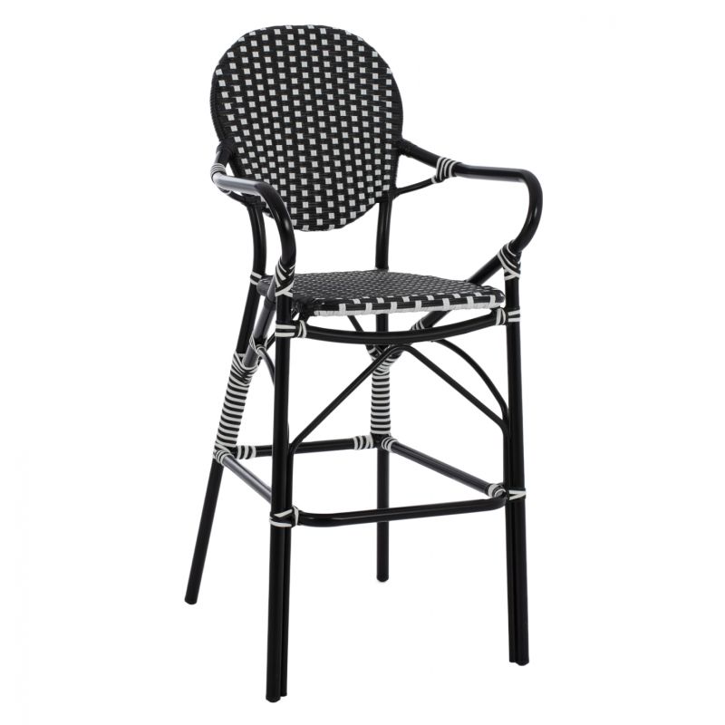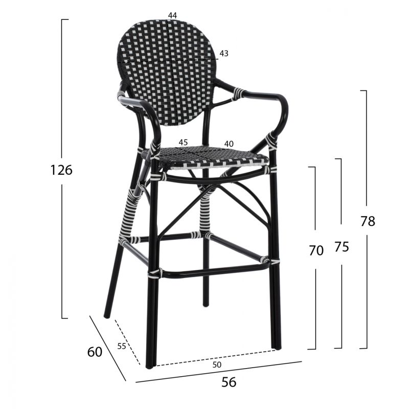 АЛУМИНИЕВА ТАБУРЕТКА ВИД НА БАМБУК С ПЛИТКА ЧЕРНО БЯЛО HM5794.02 56x60x126 см.