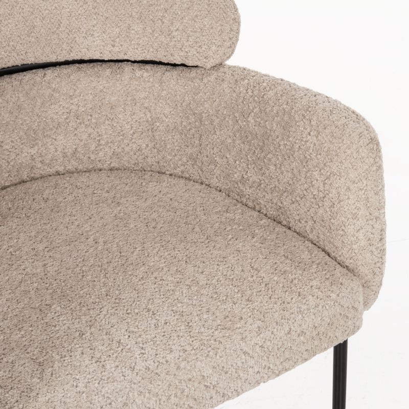 Кресло WOLF е модерно, удобно и прилепващо към тялото! Доминиращият цвят е ECRU, а 4-те крака са в черен цвят. Тапицерията на фотьойла е изработена от топла дамаска букле, която ще придаде различен вид на вашето пространство. Това е елегантно предложение, особено за вашата трапезария, но също така ще пасне почти навсякъде!