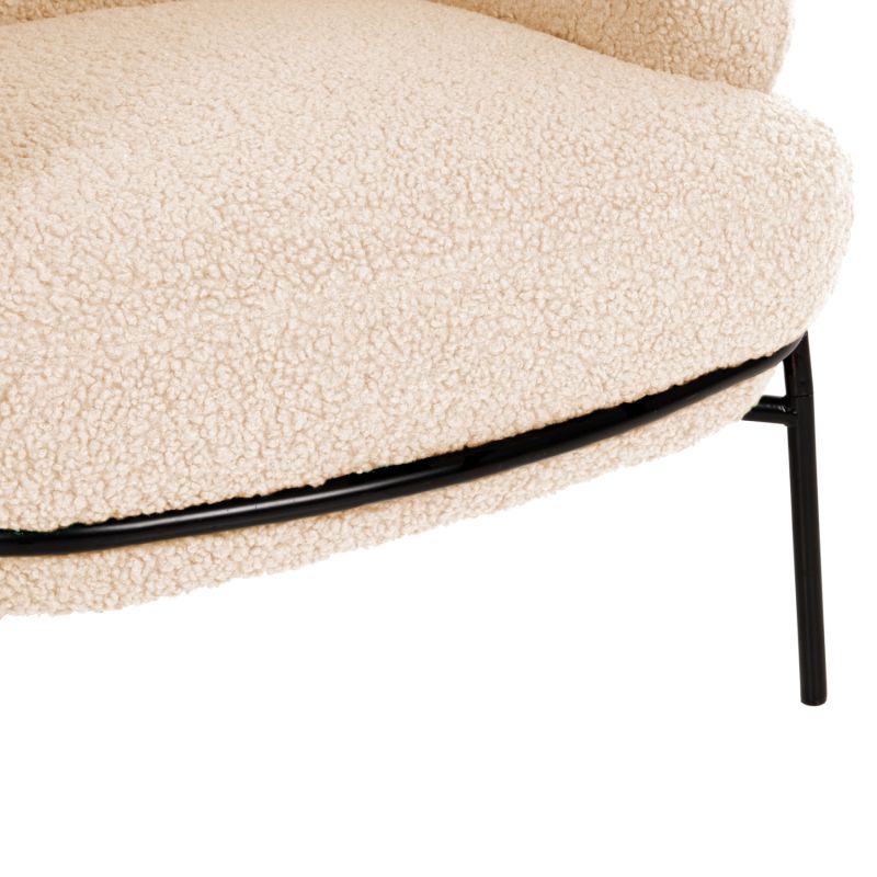 КРЕСЛО AGNES HM9525.23 БЯЛ МАТЕРИАЛ ОТ БУКЛЕ-ЧЕРНИ МЕТАЛНИ КРАКА 74x71x83Hcm.