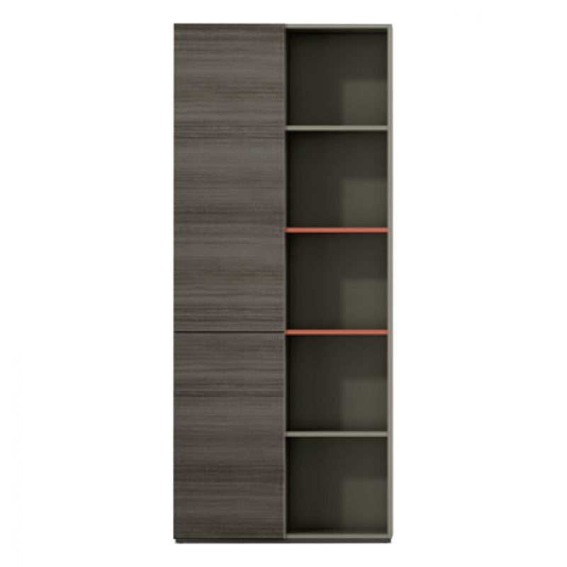 Професионална офис библиотека от серията Lux Series от висококачествен меламин, в мока и пепелен релефен нюанс и оранжеви детайли.