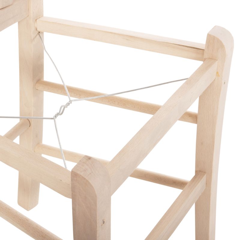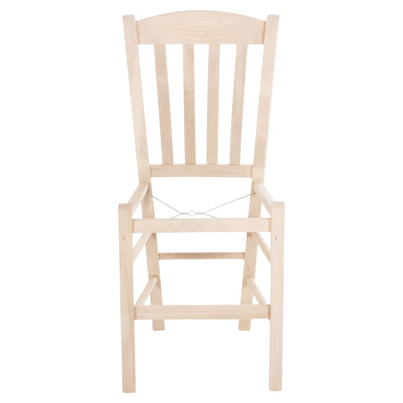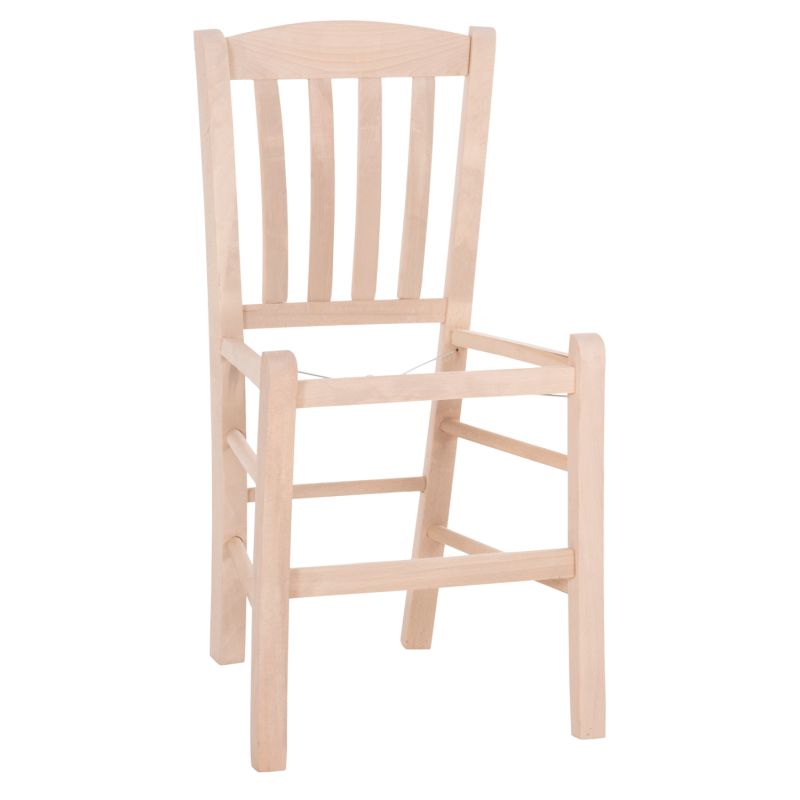 Стол MONTE за професионална употреба е традиционен стол от букова дървесина и се доставя НЕБОЯДИСВАН. Облегалката е с вертикални дървени решетки и е естетически подходяща за таверна, кафене, но и като цяло за декорирани пространства в класическия гръцки традиционен стил. Доставя се само рамката, която е вързана с тел за по-голяма здравина и издръжливост във времето.