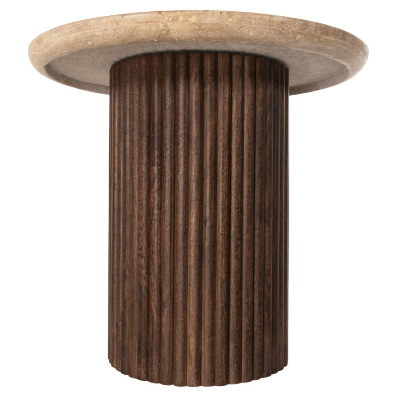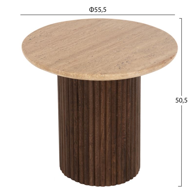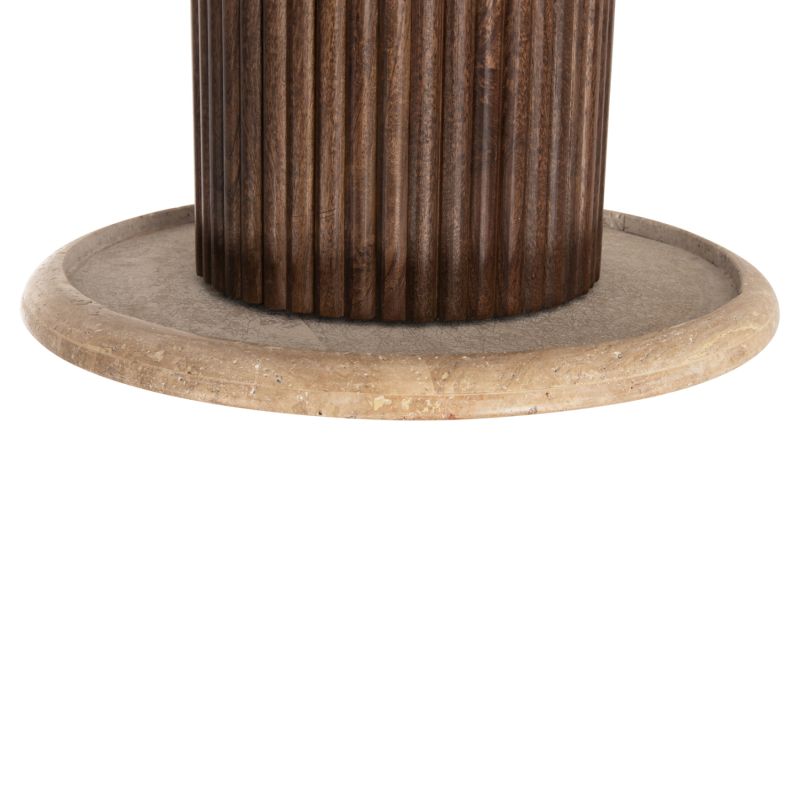 ХОЛНА МАСА КРЪГЛА GLADYS HM9714 МАНГОВО ДЪРВО МАСИВ-БЯЛ ТРАВЕРТИН Φ55x50Hсм.