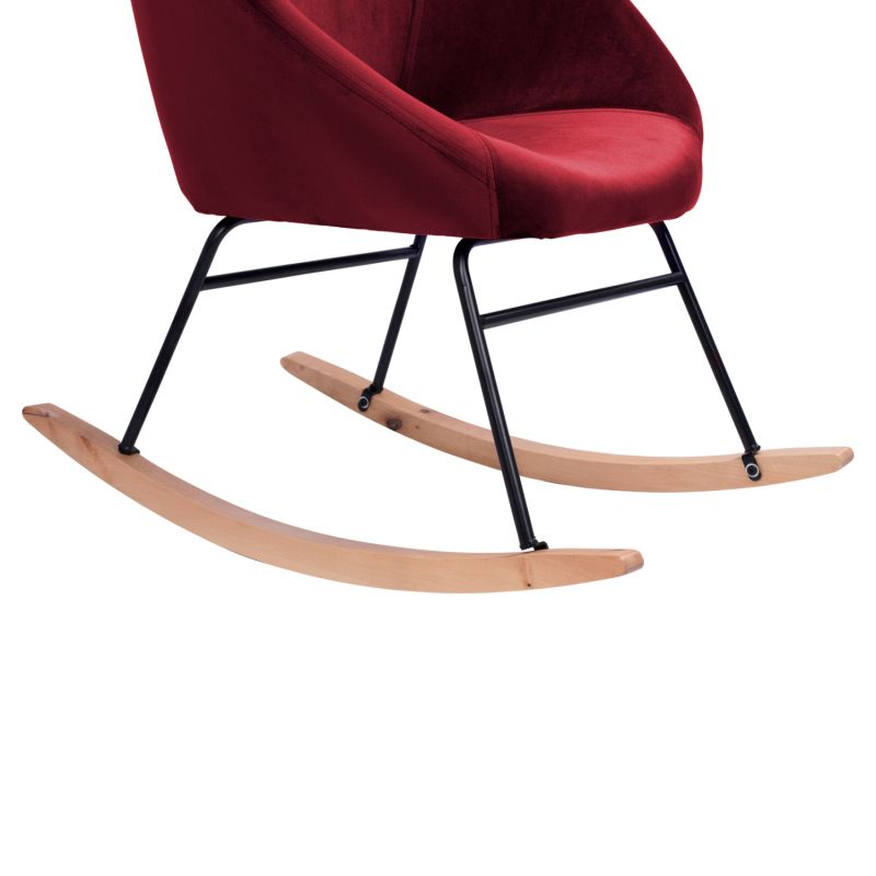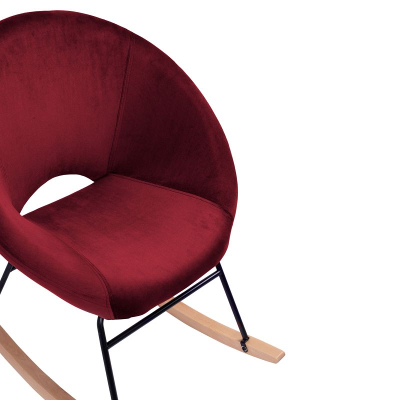 Люлеещият се стол HM8399.06 е точно това, за което повечето хора мечтаят! Модерни, удобни и.... скалист! Доминиращият цвят е прекрасното BURGUNDY Red, а извитите крака са в естествен дървесен цвят. Седалката на фотьойла е под формата на гнездо, красиво “обгръщащо” тялото, а връзката на седалката с извитите дървени крака се осъществява с ЧЕРНА метална рамка, която завършва с 4 метални крака. Какво повече може да иска някой в хола си?